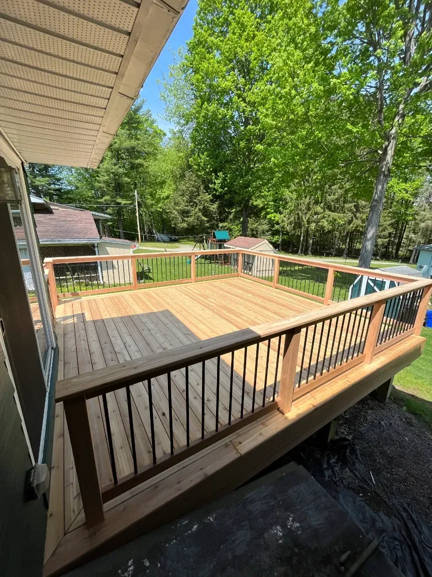 Our climate presents unique challenges—cold winters, wet springs, and sunny summers. That’s why we use proven materials like composite decking (Trex, TimberTech, Deckorators) for long-lasting durability, minimal maintenance, and great looks. Wood options like cedar or pressure-treated lumber are also available for clients who prefer a traditional feel.
